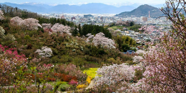Due to the varying blooming seasons caused by the geographical features and climate of each location, the Fukushima Cherry Blossom can be experienced from early April to mid-May. It is said that Hanamiyama is the Fukushima Peach Blossom Spring. In the spring, the park’s most appealing feature is the vibrant blooming of many various types of flowers, including Plum, Flowering peach, and more than ten different varieties of cherry blossoms.